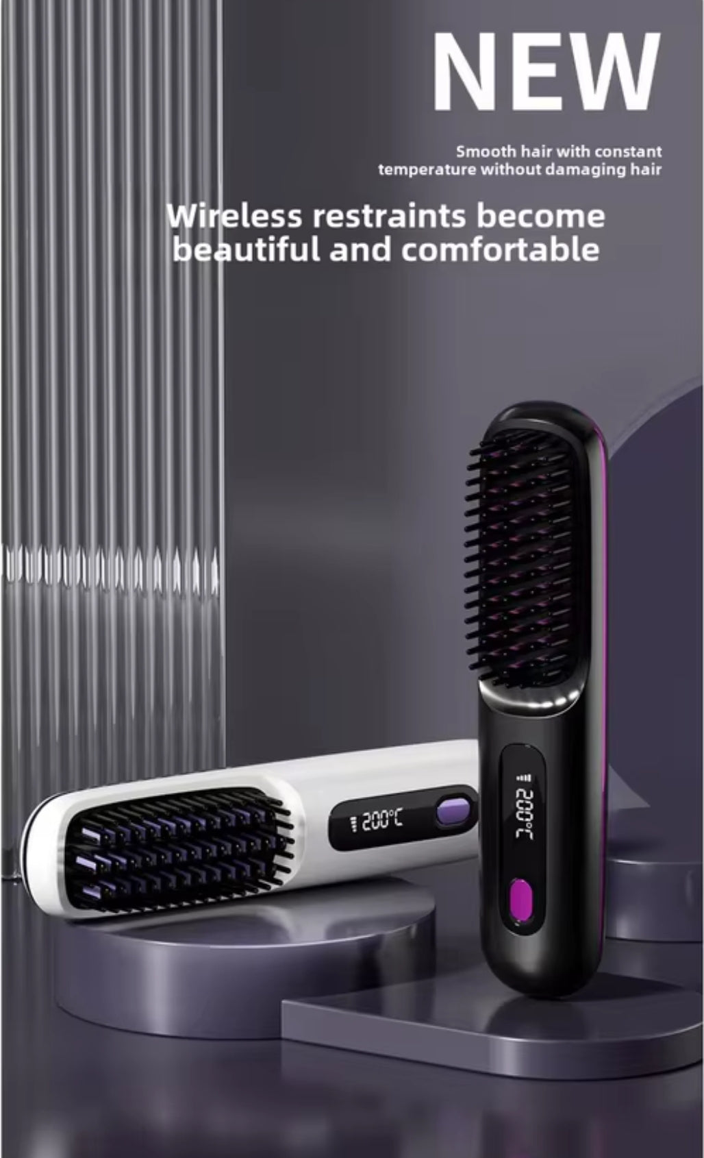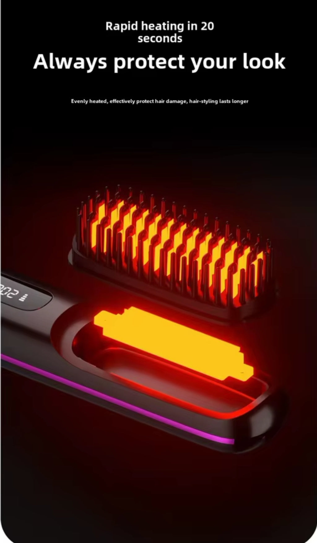 Cordless Hair Straightener Brush- brosse lisseur with 3 Setting LED Temperature 160-200C°